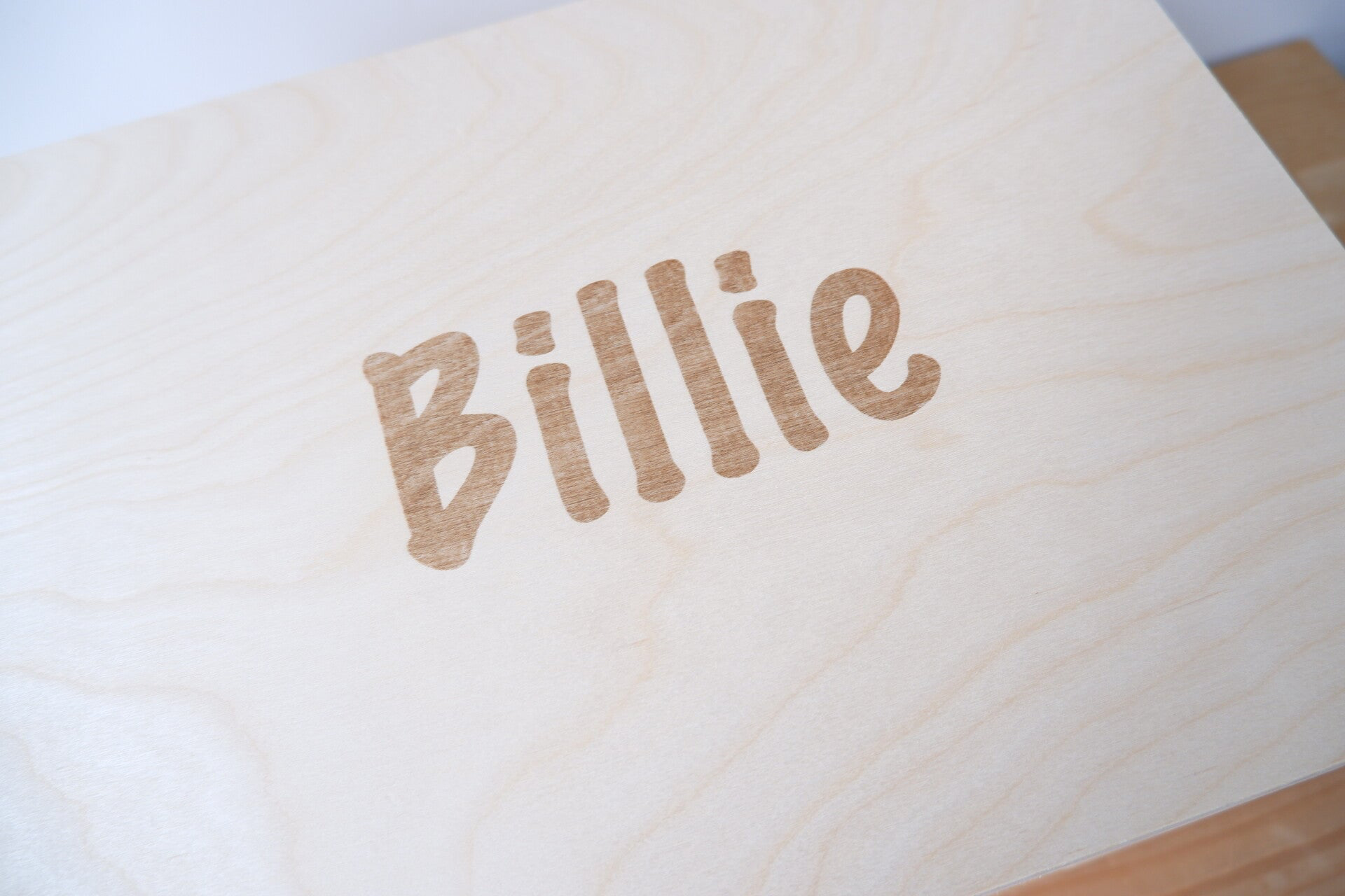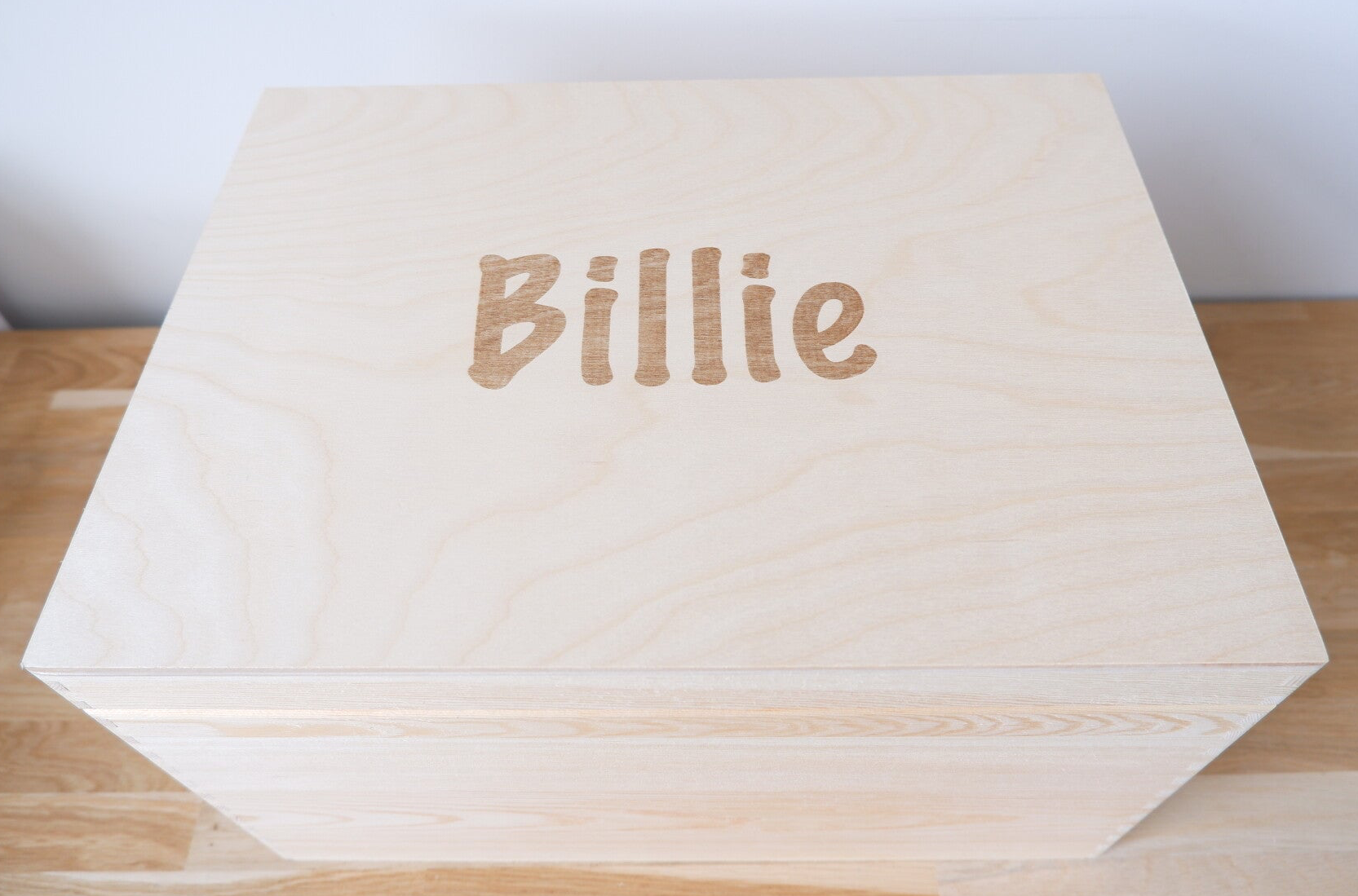 Deze doos kan je personaliseren met naam, geboortedatum of een korte tekst.
