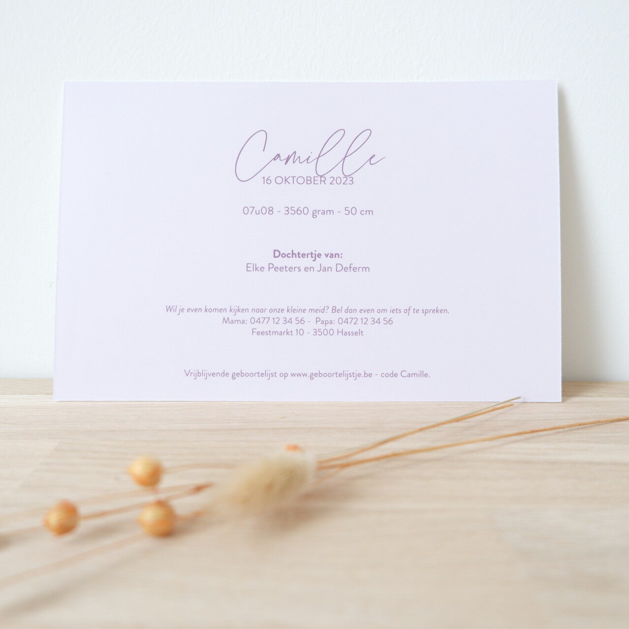 - Jullie betalen nu enkel het ontwerp van het kaartje. Na bestelling ontvangen jullie een document om in te vullen. Dit mag je terugmailen naar info@lovinggifts.be. Hierna ontvangen jullie een offerte voor de geboortekaartjes. Na bevestiging van het uiteindelijke ontwerp ontvangen jullie een factuur.