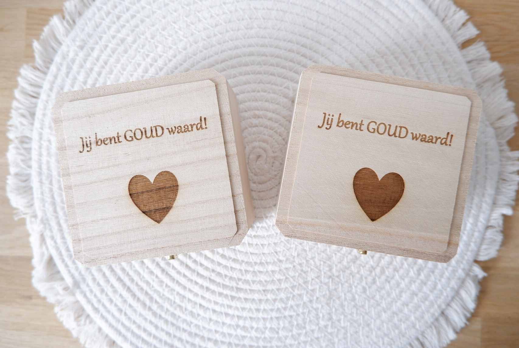 - Het kistje kan gegraveerd worden, indien je hiervoor kiest ontvang je daarna nog een ontwerp.