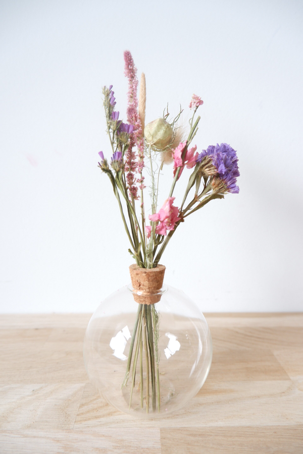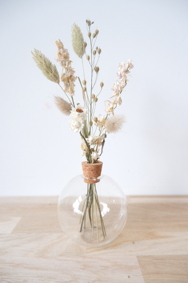 - Vaasje inclusief droogbloemen in kleur naar keuze en houten plaatje.