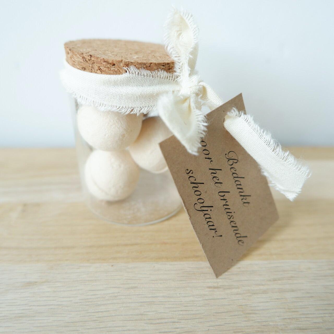 - Vulling: 3 bruisballetjes, droogbloemen