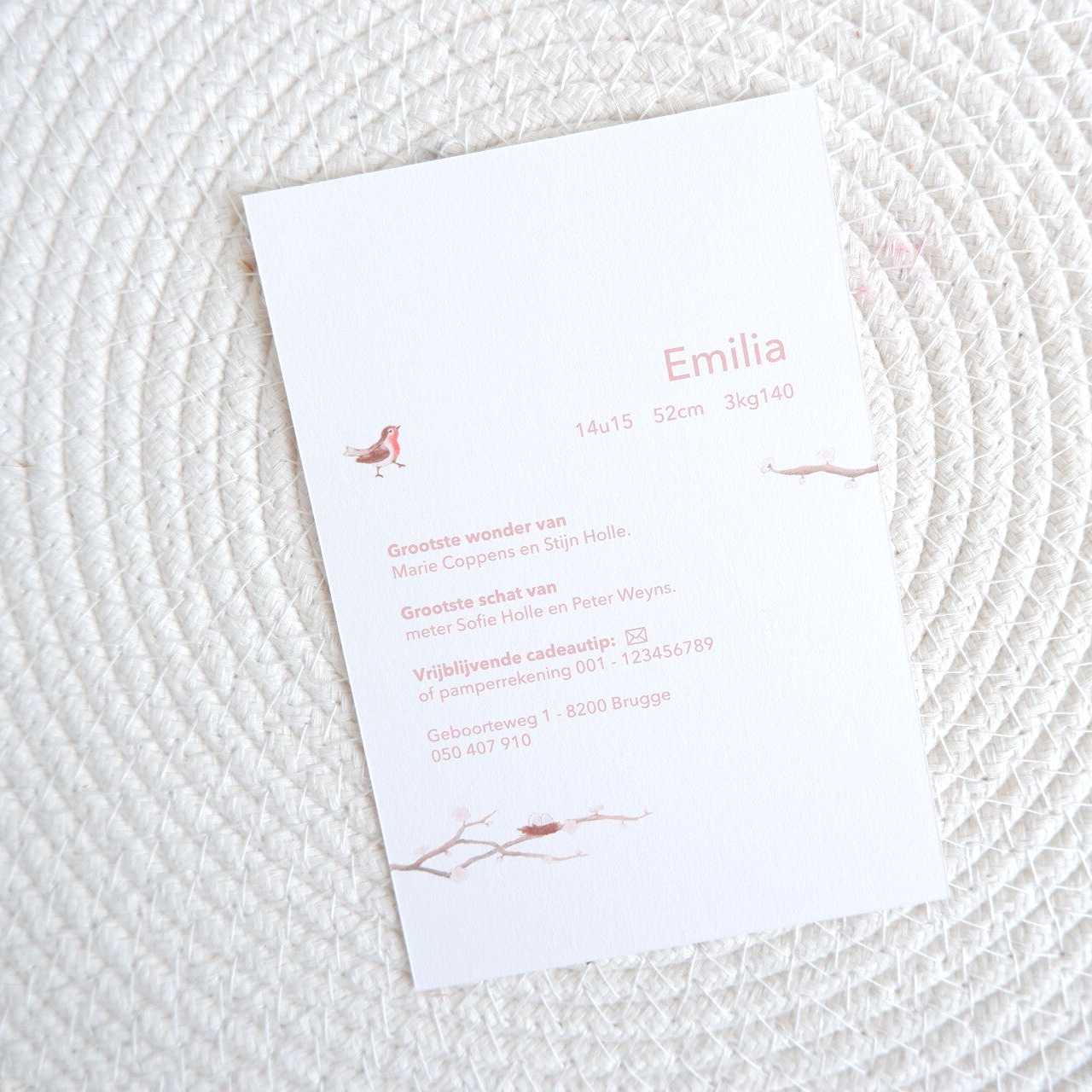 - Jullie betalen nu enkel het ontwerp van het kaartje. Na bestelling ontvangen jullie een document om in te vullen. Dit mag je terugmailen naar info@lovinggifts.be. Hierna ontvangen jullie een offerte voor de geboortekaartjes. Na bevestiging van het uiteindelijke ontwerp ontvangen jullie een factuur.