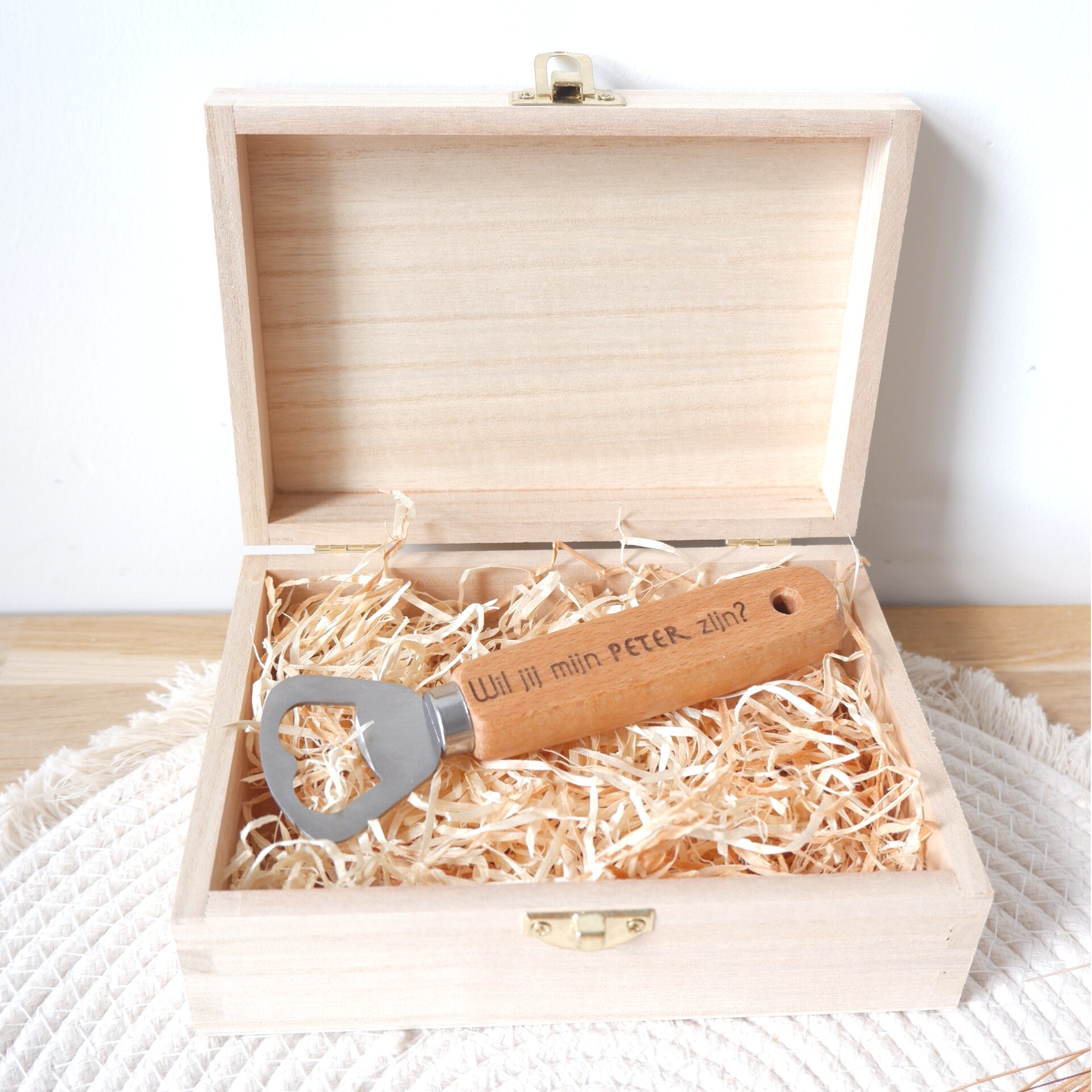 Kistje met flesopener 'Wil jij mijn peter zijn?'