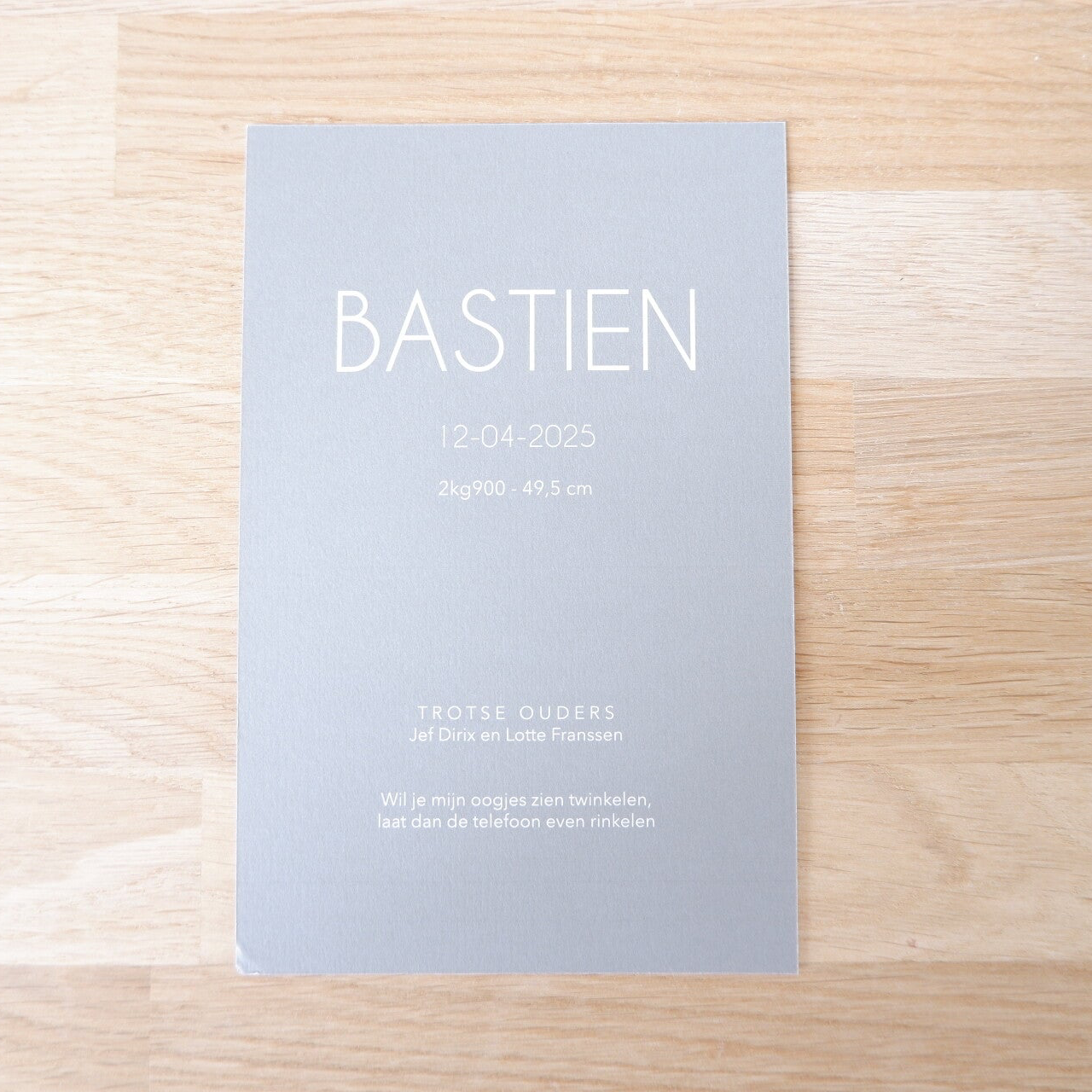 Een minimalistisch geboortekaartje met een persoonlijke touch.