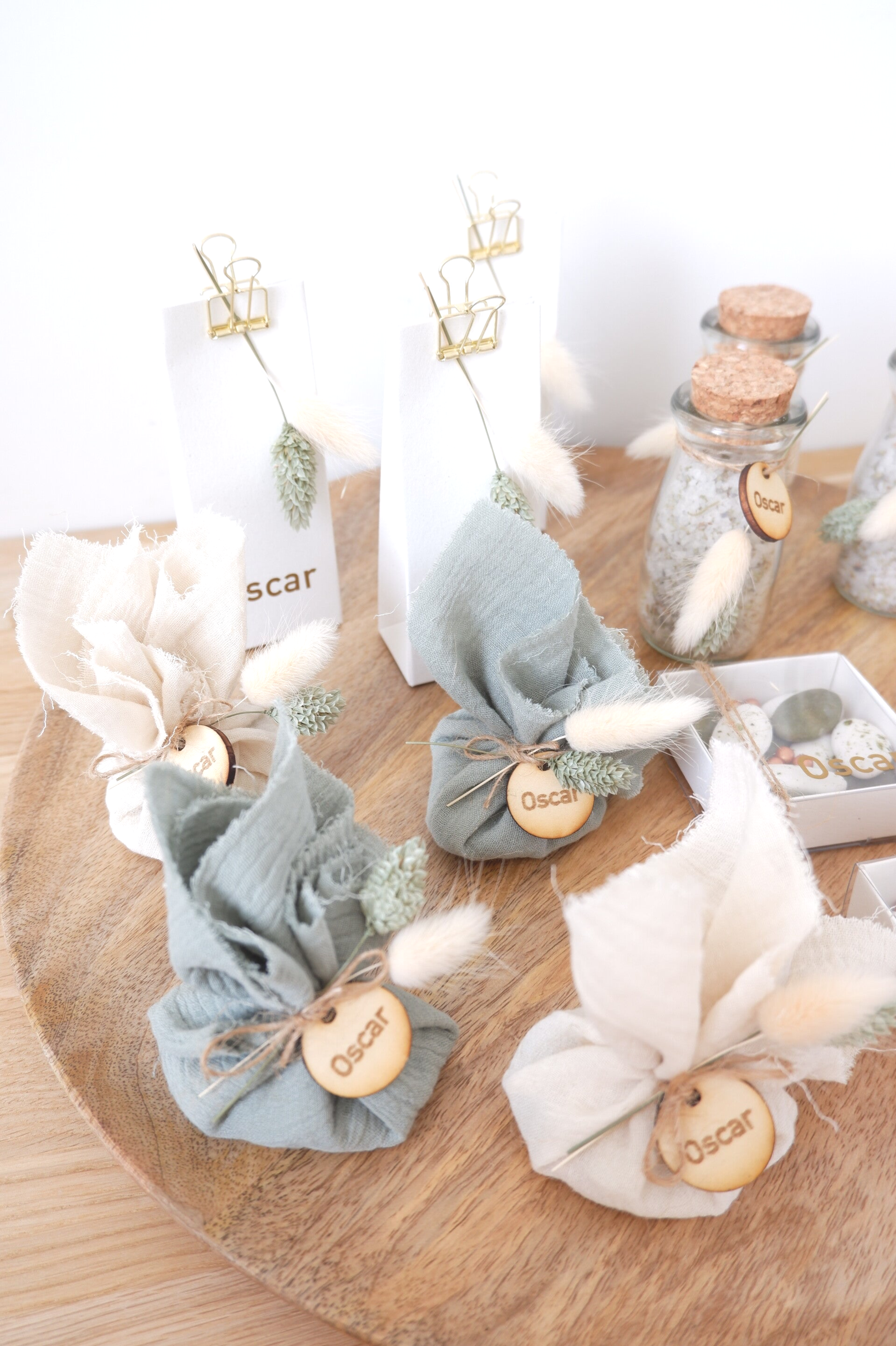 Maak je doopsuiker bedankjes extra bijzonder met onze verpakkingen. Kies voor een transparante verpakking om de kleuren van je suikerbonen of snoep mooi te laten zien of ga voor een gesloten verpakking in je favoriete kleur, van karton of stof. Combineer gerust verschillende soorten voor een harmonieus geheel en geef je bedankjes een persoonlijke touch.